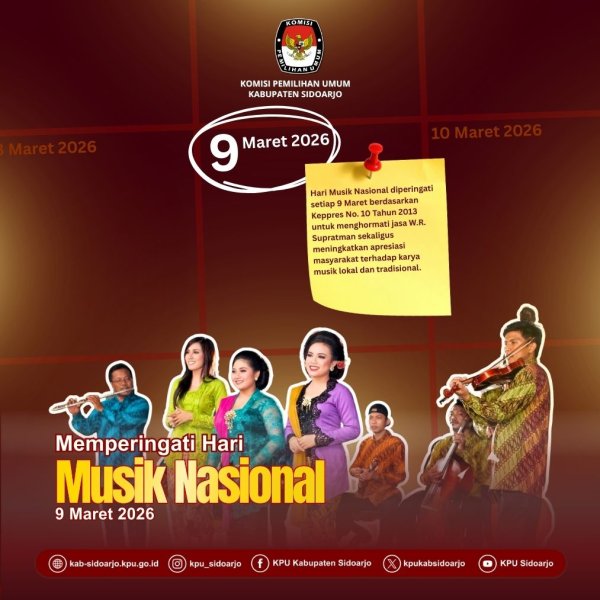 #TemanPemilih, Segenap jajaran Komisi Pemilihan Umum Kabupaten Sidoarjo (KPU Sidoarjo) mengucapkan Selamat Hari Musik Nasional 2026