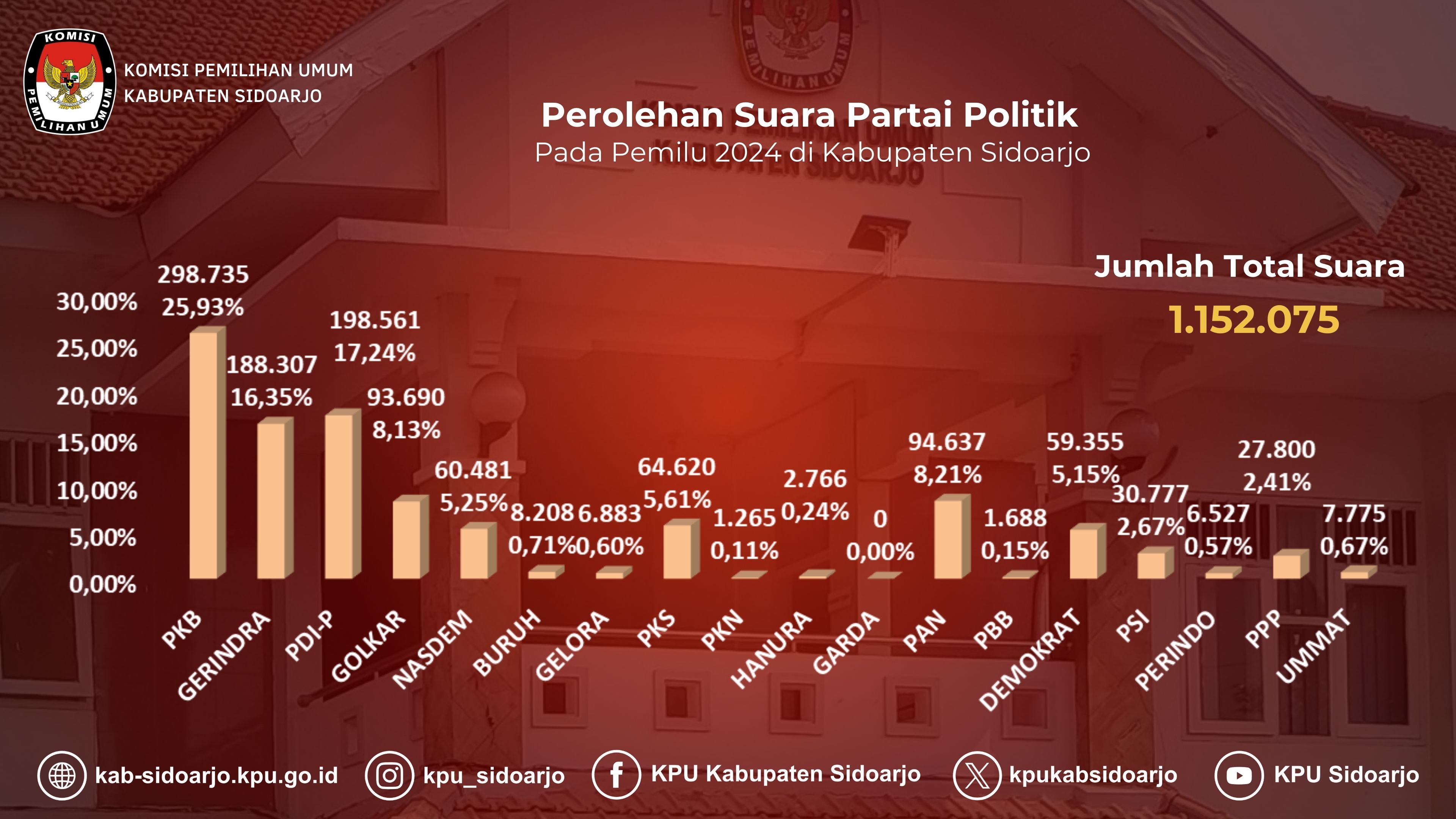 2. Perolehan suara Partai Politik pada pemilu 2024 di Kabupaten Sidoarjo