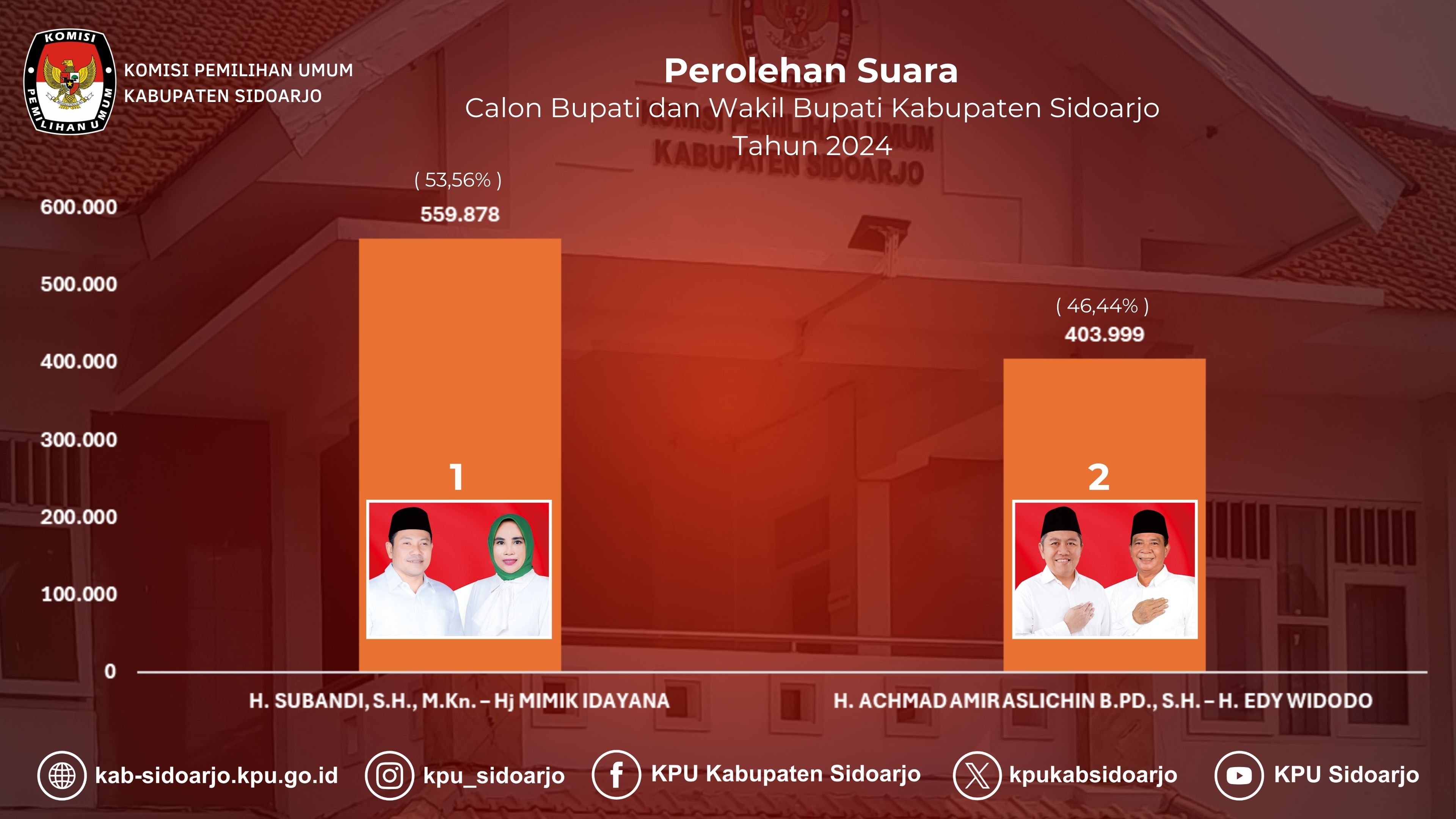 3. Perolehan Suara Calon Bupati dan Wakil Bupati Kabupaten Sidoarjo Tahun 2024