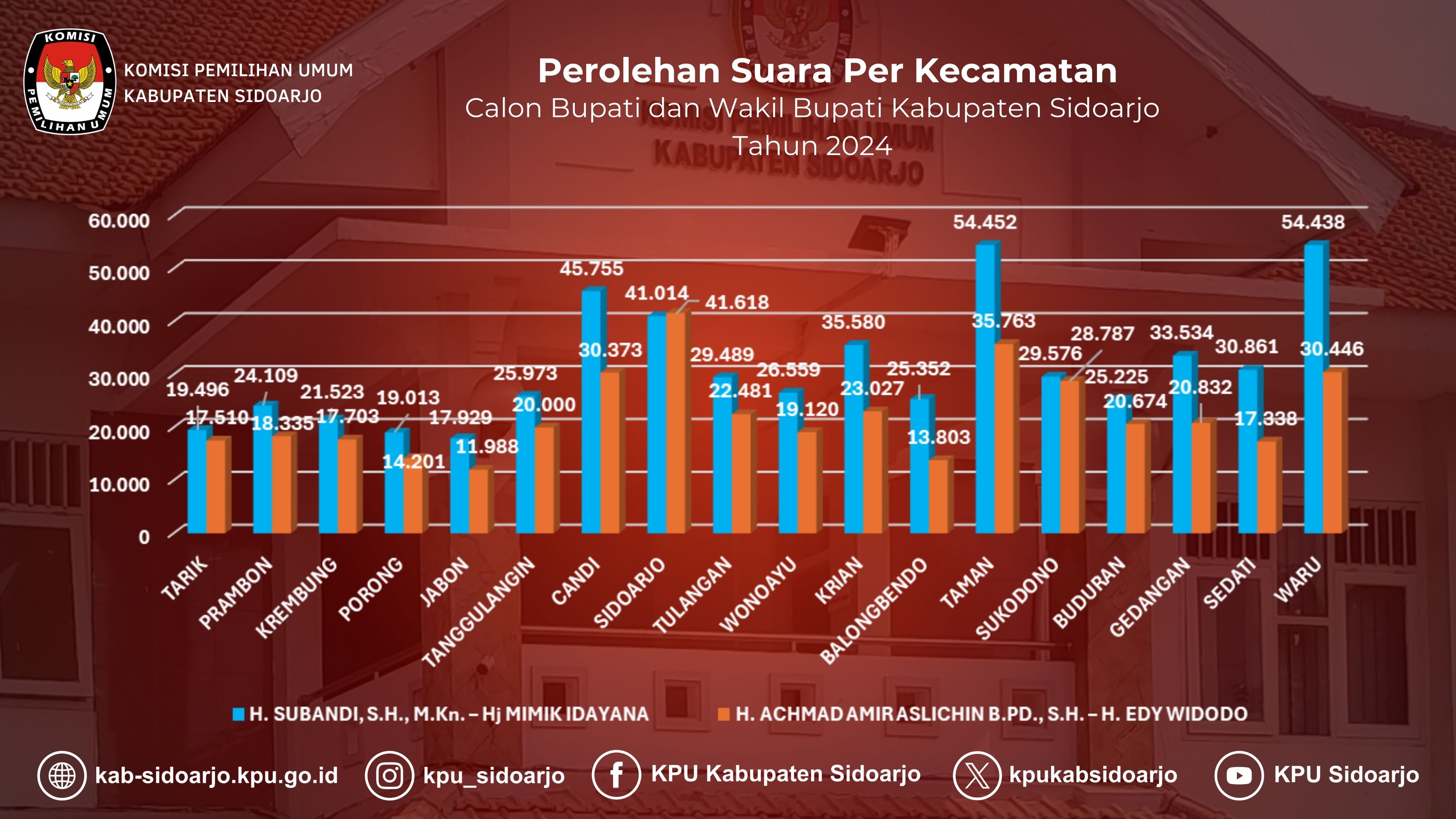 4. Perolehan Suara Per Kecamatan Calon Bupati dan Wakil Bupati Kabupaten Sidoarjo Tahun 2024