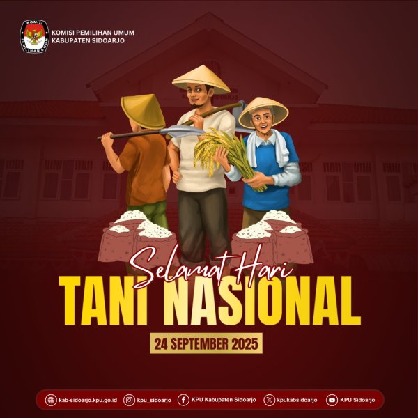#TemanPemilih, Segenap Keluarga Besar Komisi Pemilihan Umum Kabupaten Sidoarjo (KPU Sidoarjo) mengucapkan Selamat Hari Tani Nasional 2025.