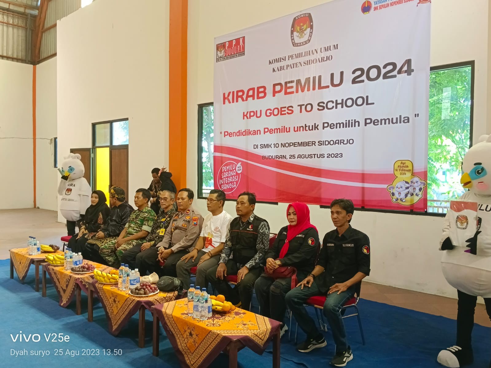 Agenda sore hari ini lanjut di Kecamatan Buduran yaitu Sosialisasi Goes To School di SMK 10 Nopember, Kecamatan Buduran. Secara keseluruhan, kurang lebih sejumlah 300 siswa serta tenaga pengajar, termasuk PPK dan PPS se-Kecamatan Buduran terlibat dalam kesuksesan kegiatan Sosialisasi Goes To School ini.***(red)