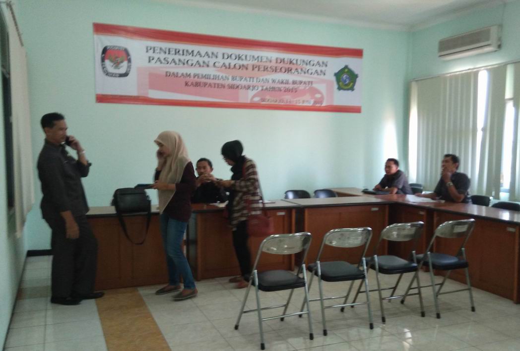 “Hari ini, tepat Pukul 16.00 WIB, masa pendaftaran sekaligus penyerahan bukti dukungan calon perseorangan Bupati dan Wakil Bupati Kabupaten Sidoarjo Tahun 2015 kami nyatakan resmi ditutup”, ucap Ketua KPU Kabupaten Sidoarjo, M. Zainal Abidin, M.PdI. “Dan, hingga hari terakhir ini, Sidoarjo nihil pasangan calon bupati dan wakil bupati dari jalur independen”, imbuh Zainal. Zainal mengatakan, sebenarnya dalam masa pendaftaran tersebut, sudah ada beberapa pihak yang melakukan konsultasi ke KPU kabupaten Sidoarjo terkait persyaratan yang harus dipenuhi oleh pasangan calon independen. “Namun, selama 4 hari masa pendaftaran tersebut, tidak ada satupun pasangan calon perseorangan yang secara resmi mendaftarkan diri ke kantor KPU Kabupaten Sidoarjo”, beber Zainal.