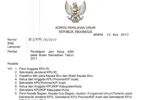 Surat Edaran Ketua KPU Nomor 383/KPU/V/2017 Perihal Penetapan Jam Kerja ASN Pada Bulan Ramadhan Tahun 2017