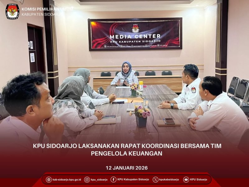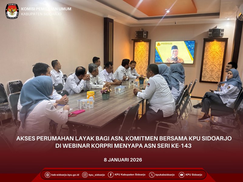 #TemanPemilih, KPU Kabupaten Sidoarjo mengikuti Penandatanganan Perjanjian Kinerja Tahun 2026, Pakta Integritas, serta Pernyataan Bebas Benturan Kepentingan yang diselenggarakan KPU Provinsi Jawa Timur pada Kamis, 8 Januari 2026, secara daring melalui Zoom Meeting.