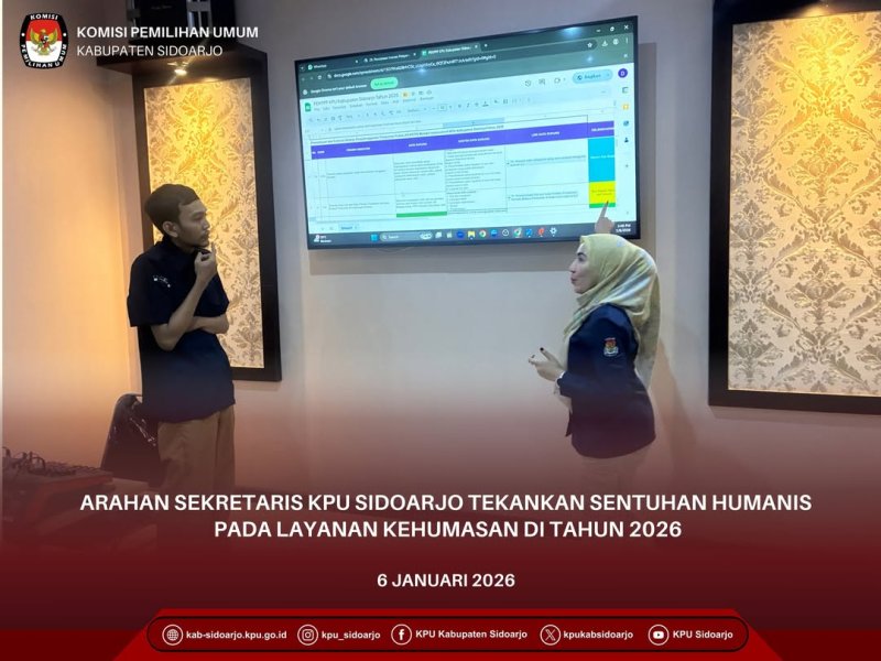 #TemanPemilih Sekretaris Komisi Pemilihan Umum Kabupaten Sidoarjo mengadakan agenda rapat internal bersama tim Parmas dalam mempersiapkan program kehumasan menyongsong tahun 2026. KPU Sidoarjo ingin memastikan bahwa setiap agenda komunikasi bukan hanya berjalan, tetapi juga punya sentuhan yang bikin masyarakat merasa lebih dekat. Rapat tersebut menjadi ruang bertemunya ide-ide segar untuk merancang langkah komunikasi yang lebih luwes dan tidak membosankan. Kegiatan tersebut dilaksanakan pada Selasa, 6 Januari 2026, di Ruang Media Center KPU Sidoarjo. Sekretaris KPU Sidoarjo, Prahastiwi Kurnia Sitorosmi, memberikan arahan agar ke depan pengisian data informasi dari KPU RI harus sesuai dengan hasil evaluasi bersama yang selama ini menjadi perhatian internal. Arahan itu disampaikan dengan tegas namun tetap hangat. Data informasi yang diminta bukan sekadar lembar isian, melainkan wajah layanan KPU Sidoarjo kepada masyarakat. Hadir dalam kegiatan ini Sekretaris KPU Sidoarjo Prahastiwi Kurnia Sitorosmi, Kasubbag SDM dan Parmas Azis Basuki, serta tim Parmas KPU Sidoarjo. Menurut #TemanPemilih agenda kehumasan seperti apa yang paling ingin Anda lihat pada tahun 2026? Jangan Lupa Komen ya. #KPUMelayani