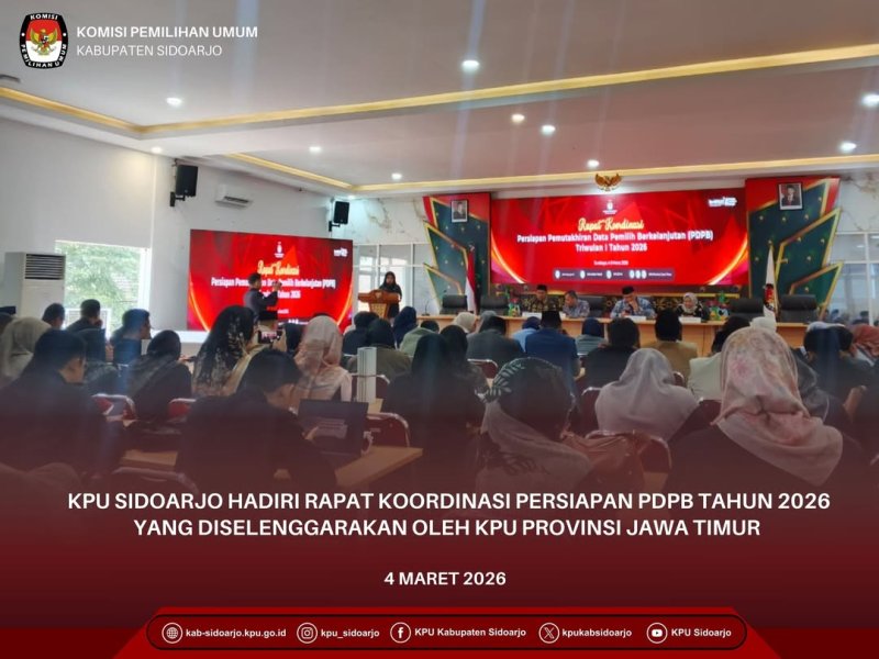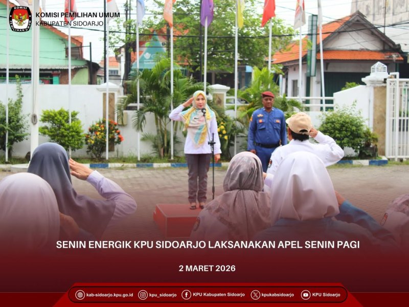 #TemanPemilih, Komisi Pemilihan Umum Kabupaten Sidoarjo (KPU Sidoarjo) melaksanakan Apel Pagi sebagai bentuk kedisiplinan serta dalam rangka melakukan koordinasi mingguan pada hari Senin (2/3/2026) di halaman kantor KPU Sidoarjo, Jln Raya Cemengkalang No 1 Kabupaten Sidoarjo.