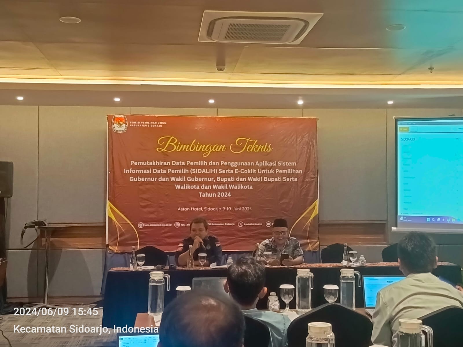 Kegiatan ini dihadiri oleh Anggota dan Sekretariat KPU Provinsi Jawa Timur, Ketua, Anggota, dan Sekretaris beserta staf Sekretariat KPU Kabupaten Sidoarjo, kepala OPD, Instansi, Camat, dan 90 orang PPK