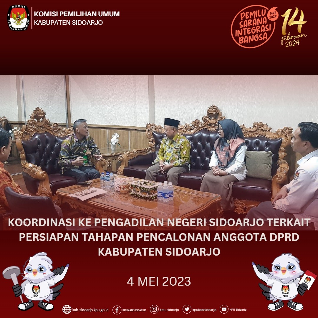 Silaturahmi dan Koordinasi Ke Pengadilan Negeri Sidoarjo Terkait Persiapan Tahapan Pencalonan Anggota DPRD Kabupaten Sidoarjo, Kamis(04/05).