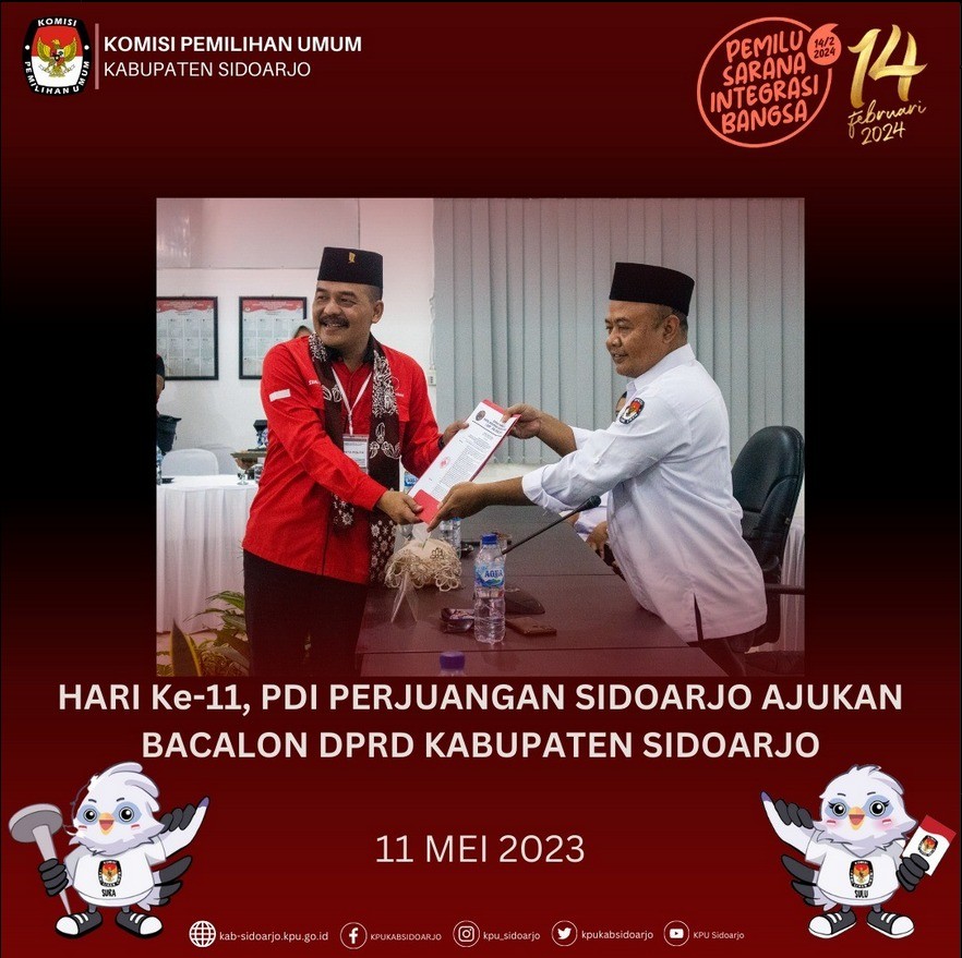 Delegasi KPU Sidoarjo adalah Mukhamad Iskak Ketua, Ana Aziza Anggota, Sulaiman Sekreetaris dan A.Taufik G selaku Kasubbag Teknis dan Hupmas diterima langsung oleh H. Winarno, S.H., M.H. Ketua Pengadilan negeri Sidoarjo.***(edw)