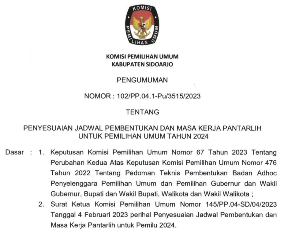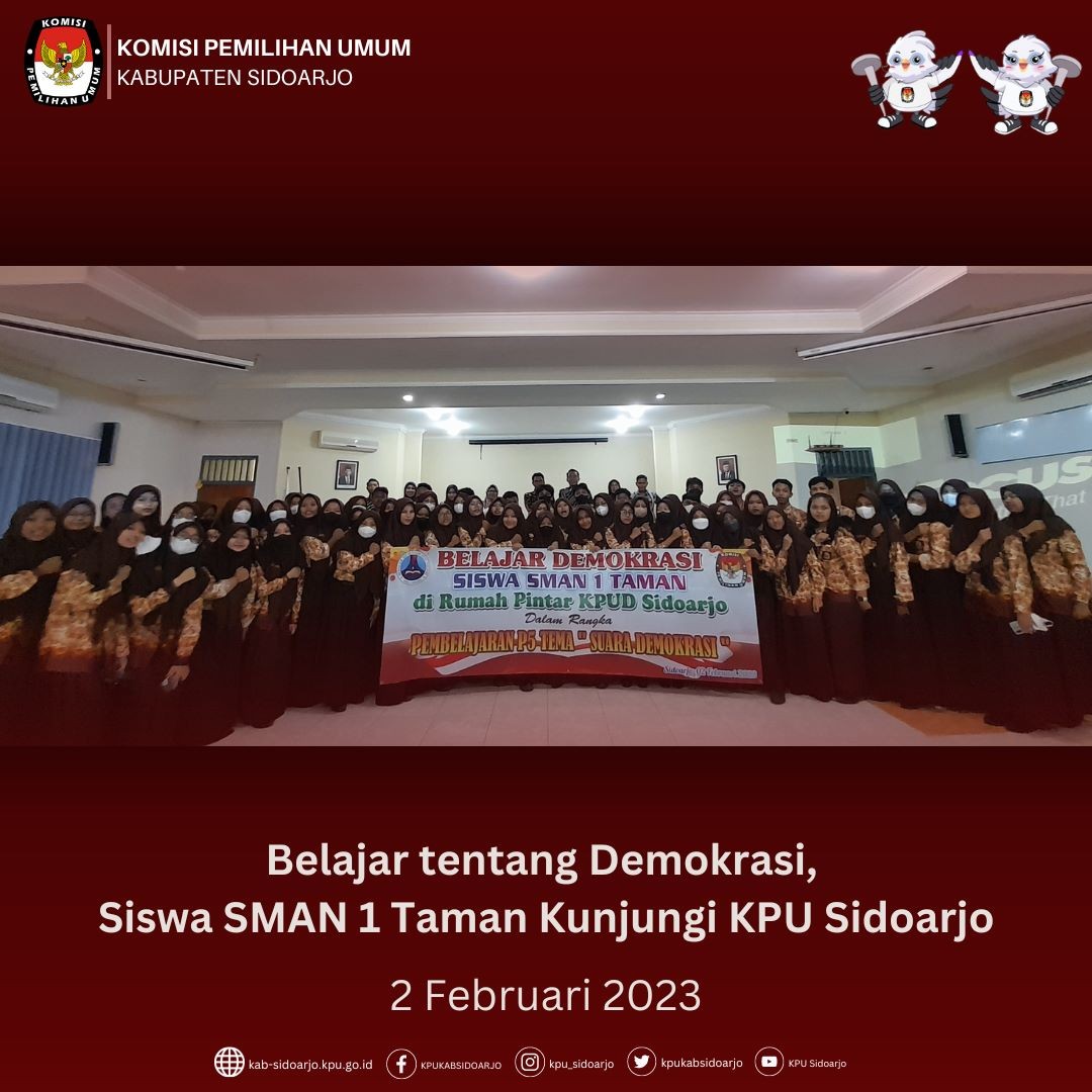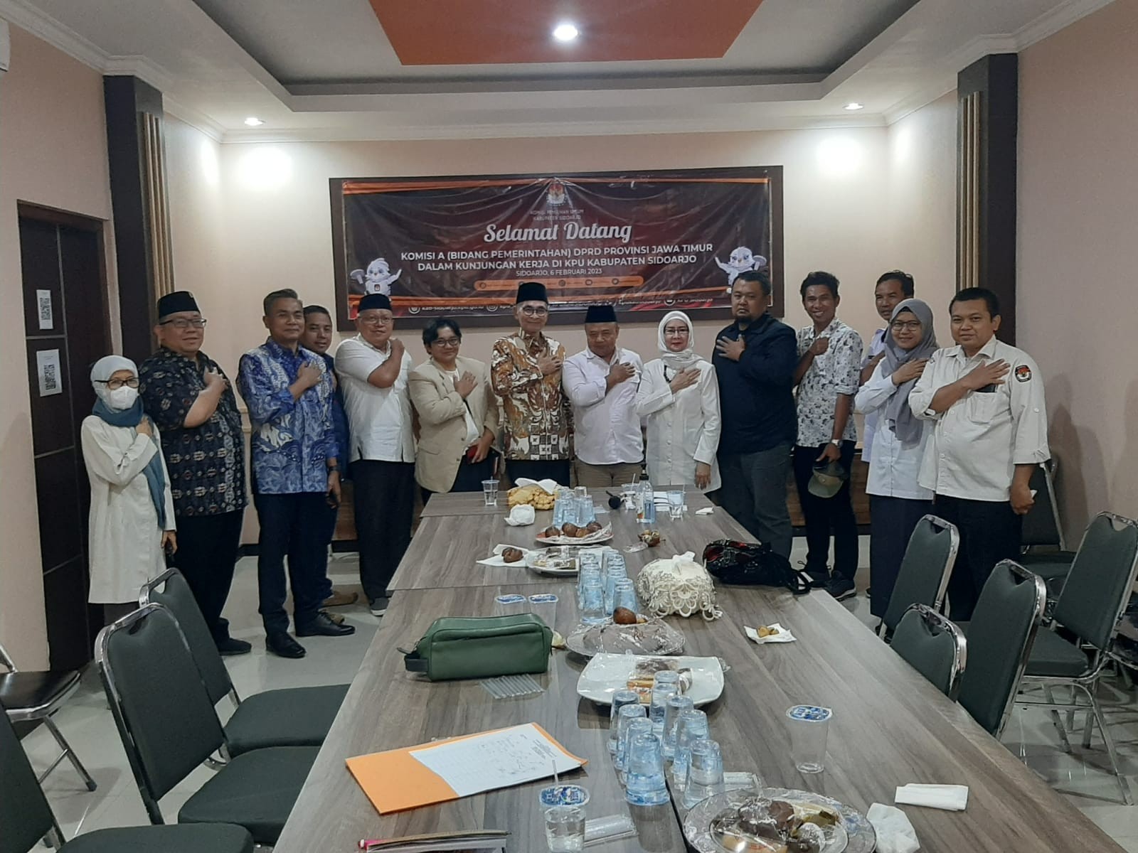Komisi Pemilihan Umum (KPU) Sidoarjo menerima kunjungan kerja dari Komisi A DPRD Provinsi Jawa Timur. Kunjungan tersebut dalam rangka kunjungan kerja tentang Kesiapan Penyelenggaraan Pemilihan Serentak Tahun 2024. Senin(06/02). Sekitar pukul 13.30 WIB, rombongan dari Komisi A DPRD Provinsi Jawa Timur tiba di kantor KPU Sidoarjo, Jl. Raya Cemengkalang No.1, Sidoarjo. Rombongan dipimpin oleh H. Muzamil Syafi'i, S.H., M.Si. Anggota Komisi A dan diikuti oleh kurang lebih 6 orang dari anggota DPRD Provinsi Jawa Timur. Rombongan diterima langsung oleh Mukhamad Iskak, Ketua KPU Sidoarjo. “Selamat datang kepada rombongan Komisi A DPRD Provinsi Jawa timur di KPU Sidoarjo, dan Terima kasih atas kehadirannya di kantor kami, ” tutur Mukhamad Iskak, mengawali sambutannya. Sementara itu ketua rombongan dalam kunjungan kerja Komisi A H. Muzamil Syafi'i, S.H., M.Si. menyampaikan banyak terimakasih telah disambut dengan ramah dan hangat. ” Alhamdulillah kami sangat senang disambut dengan baik mudah-mudahan Pemilihan Serentak 2024 khususnya di Kabupaten Sidoarjo akan berjalan dengan baik tanpa ada suatu halangan yang berarti, karena Komisi A DPRD Provinsi adalah partner kerja KPU agar pelaksanaan Pemilu yang akan dilaksanakan di tahun 2024 dapat berjalan dengan Jujur dan Adil, untuk itu kami hadir disini agar mendapatakan informasi yang valid mengenai Penyelenggaraan Pemilu 2024 terutama di Sidoarjo,” ulasnya. Acara kemudian dilanjutkan dengan paparan oleh Ketua KPU Sidoarjo mengenai Persiapan KPU Sidoarjo dalam menyelenggarakan Pemilu Serentak 2024 dan Pemilihan Serentak 2024.***(sym)