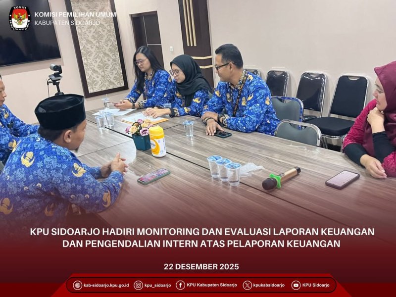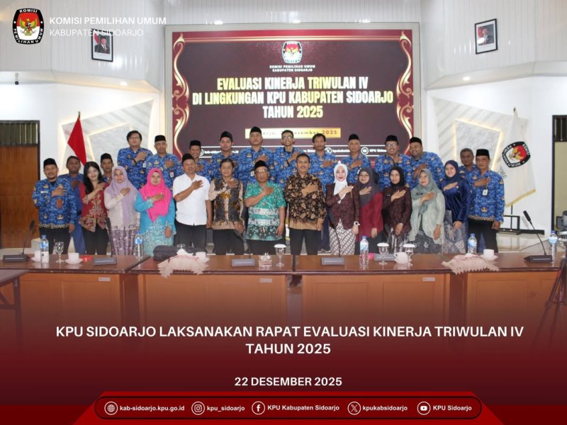 #TemanPemilih, Komisi Pemilihan Umum Kabupaten Sidoarjo (KPU Sidoarjo) melaksanakan kegiatan Rapat Evaluasi Kinerja Triwulan IV Tahun 2025 pada Senin, 22 Desember 2025, bertempat di Ruang Aula Lantai 2 KPU Kabupaten Sidoarjo. Kegiatan diawali dengan sambutan sekaligus pembukaan oleh Anggota KPU Kabupaten Sidoarjo Divisi Sosdiklih, Parmas dan SDM, M. Yasin. beliau menyampaikan bahwa evaluasi kinerja menjadi tolok ukur penting dalam menilai capaian tujuan organisasi serta meningkatkan kualitas pelayanan kepemiluan yang berorientasi pada prinsip good governance. Selanjutnya, arahan disampaikan oleh Anggota KPU Kabupaten Sidoarjo Divisi Perencanaan, Data, dan Informasi, M. Natsiruddin Yahya, yang menekankan pentingnya perencanaan berbasis data dan pohon kinerja sebagai dasar penguatan kinerja kelembagaan. Arahan berikutnya disampaikan oleh Anggota KPU Kabupaten Sidoarjo Divisi Hukum dan Pengawasan, Ahmad Nidhom, yang menegaskan perlunya kepatuhan terhadap regulasi serta penguatan fungsi pengawasan dalam setiap pelaksanaan tugas. Kegiatan kemudian dilanjutkan dengan arahan dari Anggota KPU Kabupaten Sidoarjo Divisi Teknis dan Penyelenggaraan, Haidar Munjid, yang menyoroti pentingnya kesiapan teknis serta peningkatan kualitas layanan kepemiluan kepada masyarakat. pada sesi inti, dilakukan pemaparan pohon kinerja antar subbagian serta realisasi keuangan hingga Triwulan IV Tahun 2025 yang disampaikan oleh Sekretaris KPU Kabupaten Sidoarjo, Prahastiwi Kurnia Sitorosmi. Pemaparan ini menjadi bahan evaluasi bersama dalam rangka meningkatkan efektivitas program dan akuntabilitas pengelolaan anggaran. Kegiatan ditutup oleh M. Yasin, yang menegaskan bahwa evaluasi kinerja merupakan bagian penting untuk meningkatkan kualitas pelayanan publik. ditambahkan bahwa salah satu tolok ukur kinerja KPU adalah pelayanan kepada masyarakat, sehingga ke depan diperlukan evaluasi berkelanjutan, perbaikan terhadap kekurangan, serta peningkatan kualitas layanan agar benar-benar terwujud pelayanan kepemiluan yang layak dan baik. Hadir dalam kegiatan ini Seluruh Anggota KPU Sidoarjo, Sekretaris, Jajaran kasubbag serta seluruh staf KPU Kabupaten Sidoarjo #KPUMelayani