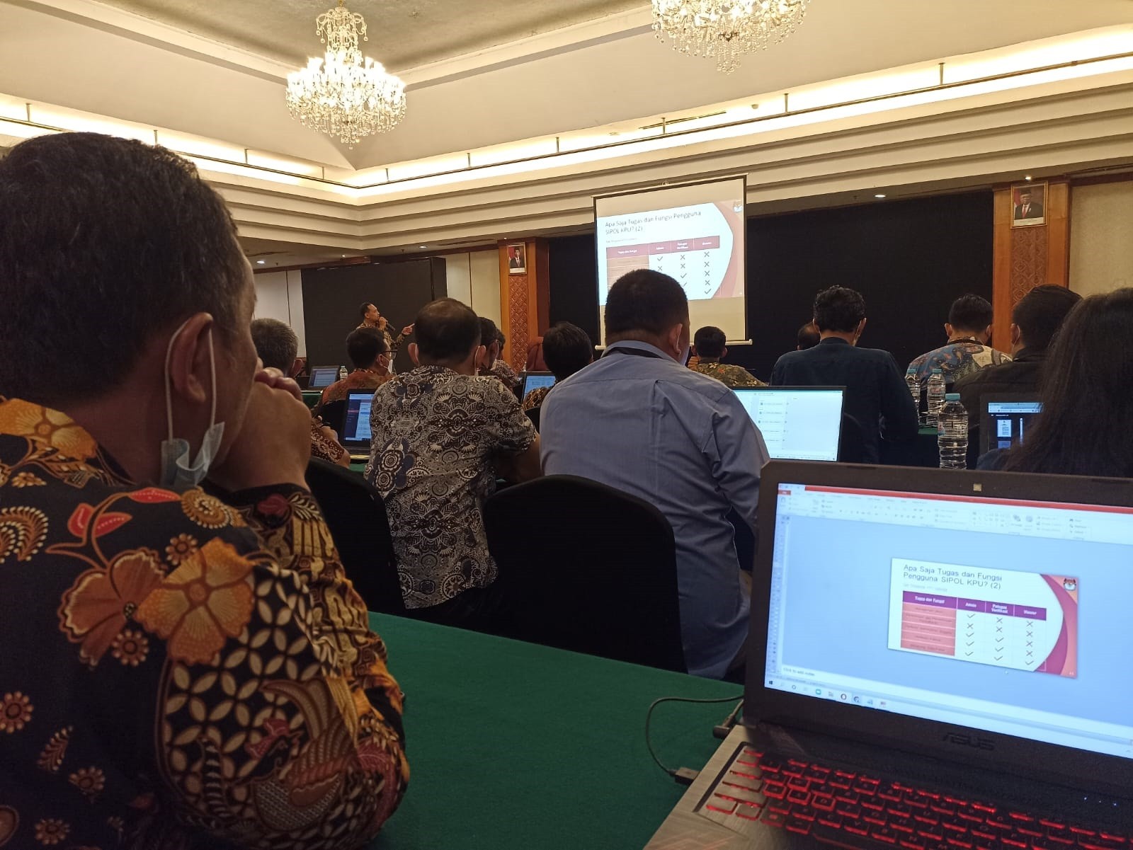 Jakarta, https://kab-sidoarjo.kpu.go.id - KPU Kabupaten Sidoarjo mengikuti Kegiatan Bimbingan Teknis Peraturan KPU Tentang Pendaftaran, Verifikasi, dan Penetapan Partai Politik Peserta Pemilu Serta Pengenalan Fungsi Sistem Informasi Partai Politik (SIPOL) yang diselenggarkan oleh KPU RI di Jakarta, Sabtu (23/07). Bimbingan teknis tersebut diikuti oleh empat orang peserta dari masing-masing kabupaten/kota se-Indonesia. Kegiatan dilaksanakan di Hotel Grand Sahid Jaya Jakarta Jl. Jendral Sudirman No. 86 Jakarta.