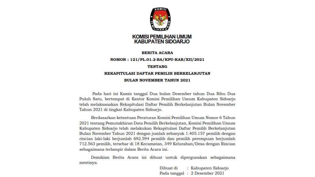 NOMOR : 121/PL.01.2-BA/KPU-KAB/XII/2021