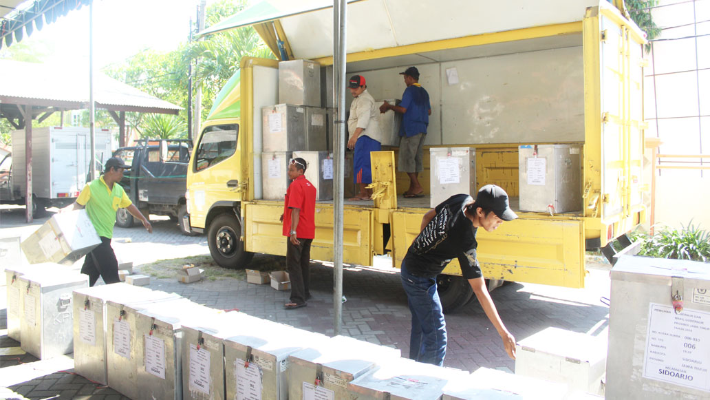 kpud-sidoarjokab.go.id – Empat hari menjelang Pilgub, KPU Kabupaten Sidoarjo distribusikan logistik ke enam Kecamatan.Dengan waktu yang tinggal hitungan hari, Jumat (22/6) KPU distribusikan logistik Pilgub Jawa Timur. Hari kedua, logistik di distribusikan ke enam Kecamatan antara lain Balongbendo, Buduran, Gedangan, Krembung, Tarik, dan Porong.Sementara itu, logistik yang di distribusikan yakni kotak suara beserta isinya salah satunya formulir model C1 Plano.Logistik yang di distribusikan dengan tiga truk tersebut mendapat pengawalan ketat dari Aparat Kepolisian.Rencananya distribusi logistik akan dilakukan selama empat hari hingga 25 Juni mendatang.(ryan)