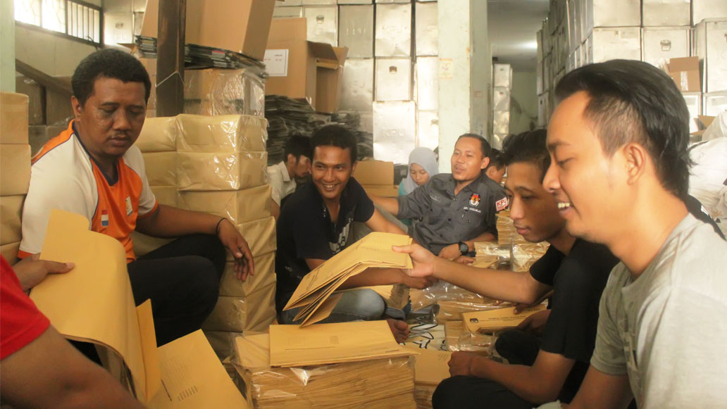 kpud-sidoarjokab.go.id – Memiliki waktu yang cukup pendek yakni 15 Hari, KPU Kabupaten Sidoarjo semakin mempercepat persiapan logistik Pilgub Jatim yang dilaksanakan pada 27 Juni.Setelah melakukan sortir Surat Suara dan setting bantal alas coblos dan paku untuk alat coblos, Selasa (12/6) KPU Kabupaten Sidoarjo lakukan setting sampul.Setting sampul yang dilakukan di Gudang Kantor KPU Kabupaten Sidoarjo tersebut dikelompokkan tiap Kecamatan yang kemudian dilipat satu persatu.Tidak hanya sampul untuk surat suara melainkan terdapat berbagai sampul yang disetting hari itu juga antara lain yaitu sampul Fromulir Model C – KWK, Sampul DPT/DPT-B, Sampul Formulir Model D, Sampul formulir Daftar Pemilih dan Daftar Hadir, Sampul Model DAA – KWK, Sampul Model DA, Sampul Anak Kunci, Sampul salinan Model C – KWK, Sampul Model DB, dan Sampul Surat Suara dari KPU Kab/Kota ke TPS.Sampul yang telah di setting akan di distribusikan bersamaan dengan logistik yang sudah siap lainnya di 18 Kecamatan di Kabupaten Sidoarjo.(ryan)
