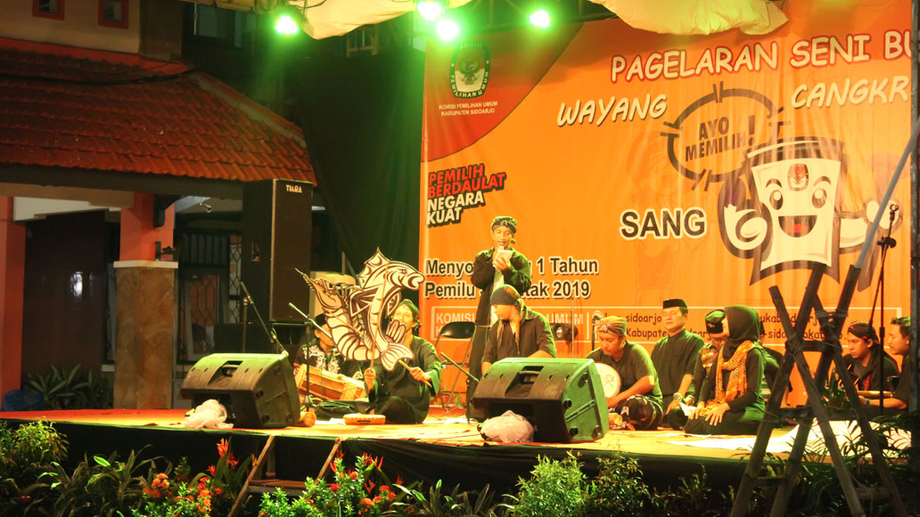 kpud-sidoarjokab.go.id- Setahun lagi tepatnya pada 17 April 2019, Indonesia akan dihadapkan dengan Pemilihan Presiden (Pilpres) dan Pemilihan Legislatif (Pileg). Menyambut satu tahun Pemilu, Sabtu (21/3) KPU Kabupaten Sidoarjo selenggarakan pagelaran seni budaya wayang cangkrukan Sang Sura menyongsong satu tahun Pemilu Serentak 2019.Dengan tema melalui pagelaran seni budaya membangun pemilih berdaulat guna menyukseskan pemilu tahun 2019, pagelaran seni tersebut dihadiri Bupati Kabupaten Sidoarjo H. Saiful Illah serta Forkopimda, selain itu di ikuti oleh Parpol peserta Pemilu 2019 dan PPK se-Kabupaten Sidoarjo.Dalam sambutannya Saiful mengungkapkan bahwa pagelaran seni budaya adalah momentum yang sangat tepat untuk lebih mempererat persatuan antar elemen masyarakat di Kabupaten Sidoarjo. “Kegiatan ini di harapkan dapat memberikan keamanan, kenyamanan, serta kondusifitas dalam penyelenggaraan Pemilu di Kabupaten Sidoarjo ini”. Lanjut Saiful.Sementara itu Ketua KPU Kabupaten Sidoarjo Mokhammad Zainal Abidin juga menyampaikan bahwa pelaksanaan pemilu harus diwarnai nilai-nilai budaya Nusantara. “Ketika budaya Nusantara digabungkan dalam proses penyelenggaraan Pemilu maka disana banyak nilai-nilai yang harus digali dan dikedepankan sebagai ciri khas demokrasi nusantara.” Terang Zainal.“Pemilu 2019 akan menjadi implementasi dari budaya Indonesia yang beragam dimasukkan kedalam wadah pemilu dan nanti akan terpilih pemimpin-pemimpin yang akuntabel dan amanah.” Lanjut Zainal.Acara yang berlangsung selama tiga jam tersebut dimeriahkan oleh Agus Kuprit dan Cak Tawar serta Komunitas Lesbumi Sidoarjo.(ryan)
