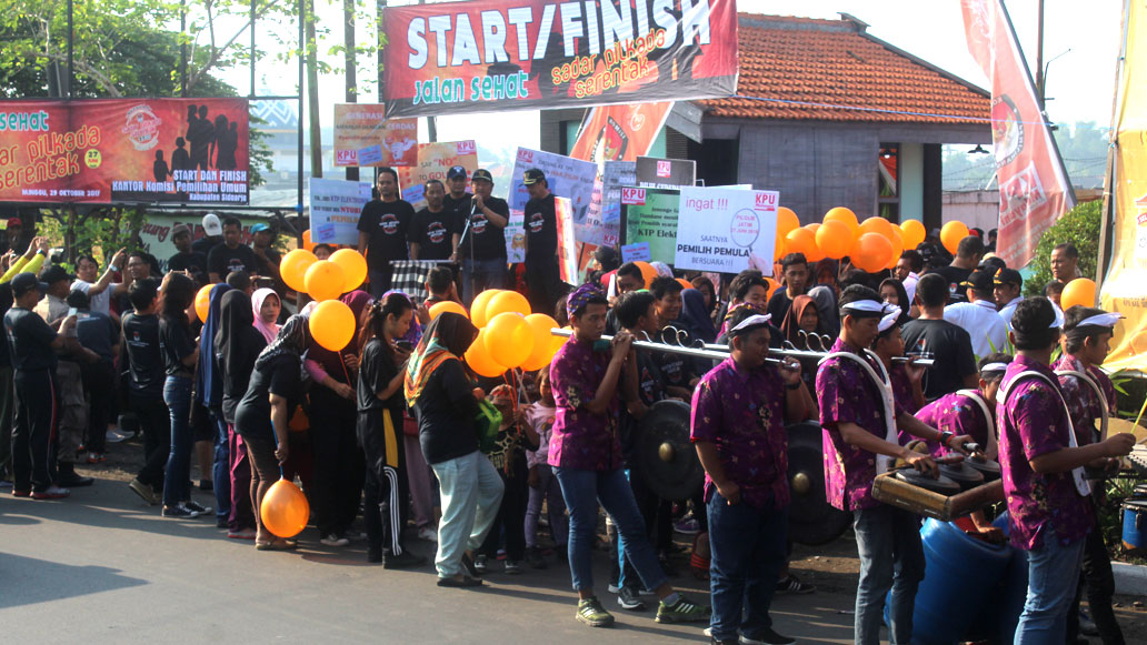 kpud-sidoarjokab.go.id- Minggu pagi (29/10/2017), KPU Sidoarjo mengadakan jalan sehat dengan tema “Gerakan Sadar Pilkada Serentak Tahun 2018”. Jalan sehat tersebut digelar dalam rangka untuk mensosialisasikan kepada masyarakat umum tentang adanya Pemilihan Gubernur dan Wakil Gubernur Provinsi Jawa Timur Tahun 2018.Dibuka langsung oleh Bupati Sidoarjo H. Saiful Ilah, S.H, M.Hum, jalan sehat dimulai tepat pukul 07.00 WIB. Peserta jalan sehat datang dari berbagai kalangan yang terdiri dari Forkopimda, Instansi terkait, Parpol, Ormas, Wartawan, Pemilih Pemula, dan Masyarakat sekitar KPU. Antusiasme peserta sangat tinggi untuk mengikuti jalan sehat tersebut, terlihat dari penuhnya halaman KPU Sidoarjo yang dihadiri kurang lebih sekitar 500 orang, adapun rute jalan sehat yang telah ditentukan sepanjang 3 km yang melewati Desa Cemengkalang dan Desa Suko, peserta juga diiringi oleh grup musik patrol dari Kecamatan Tulangan.Dalam kegiatan jalan sehat tersebut peserta dimeriahkan dengan hiburan musik dangdut, seorang guru SMA Antartika dan seorang warga Ganggang Panjang Tanggulangin mendapatkan hadiah utama berupa lemari es dan mesin cuci. (ryan)