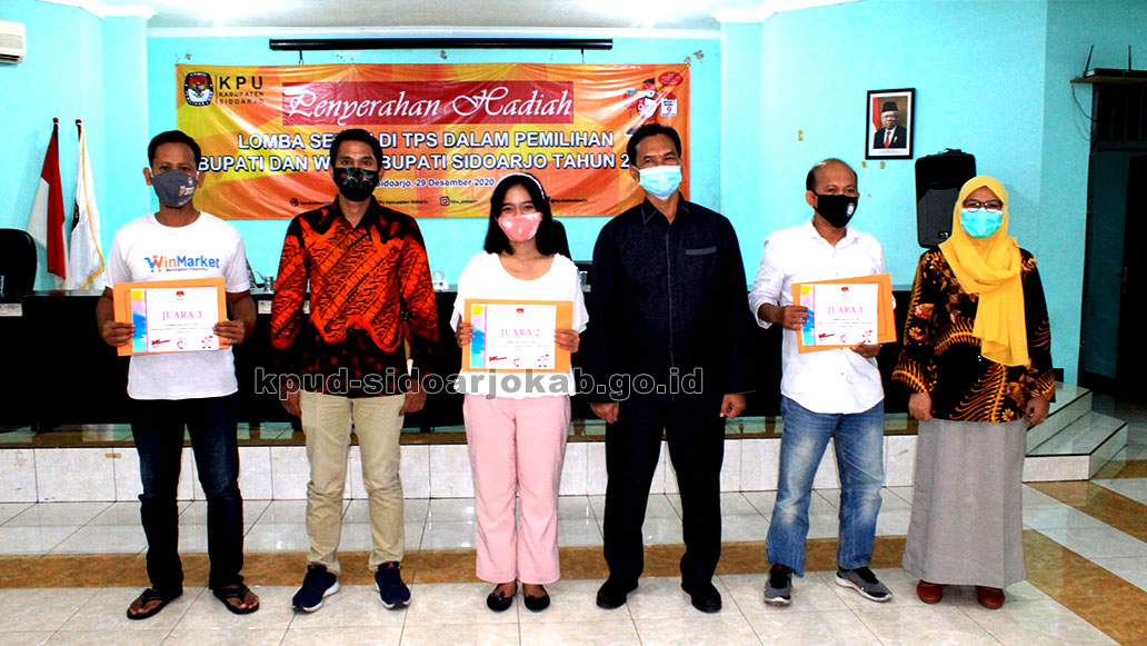 kpud-sidoarjokab.go.id-KPU Sidoarjo melaksanakan penyerahan hadiah lomba selfie di TPS dalam pemilihan bupati dan wakil bupati sidoarjo tahun 2020. Penyerahan hadia ini di laksanakan di hall kantor KPU Sidoarjo lantai II. Selasa (29/12/2020).Fauzan Adim komisioner KPU Sidoarjo divisi sosdiklih, SDM dan parmas saat membuka kegiatan ini menyampaikan terima kasih kepada masyarakat sidoarjo yang telah mengikuti lomba selfie ini dan selamat kepada para pemenang. “Alhamdulilah pilbup sidoarjo tahun 2020 ini adalah sejarah pertama partisipasi tertinggi di bandingankan dengan pilbup-pilbup sebelumnya,” tuturnyaIa melanjutkan bahwa panitia telah berembuk untuk menentukan siapa saja yang menjadi pemenangnya. “Kemarin kami panitia lomba selfie telah berembuk dan pada hari sabtu kemarin kami telah mengumumkan pemenang lomba selfie di TPS pada pemilihan bupati dan wakil bupati sidoarjo tahun 2020. Ada 28 orang yang terpilih dengan total hadia 12 juta,” jelasnya.Begitu pun dengan salah satu panitia lomba selfie Ana azizah komisioner KPU Sidoarjo divisi hukum dan pengawasan mengucapkan terima kasih juga atas partisipasinya dalam mengikuti lomba selfie kemarain. " para pemenang hari ini adalah orang-orang yang beruntung karena banyak peserta mengikuti lomba selfie yang tersebar 18 kecamatan hanya 28 orang saja yang jadi pemengannya oleh sebab itu kami dari KPU Sidoarjo mengucapkan banyak-banyak terima kasih kepada seluruh peserta yang mengikuti lomba selfie dan selamat kepada para pemenang dan sedikit hadia dari KPU Sidoarjo semoga bermanfaat dan bisa menambah semangat apabila ada kegiatan-kegiatan dari KPU Sidoarjo yang akan datang. Harapan kami masyarakat sidoarjo selalu berpartisipasi dalam pemilu," jelas AnaSementar itu sekretaris KPU Sidoarjo, Sulaiman mengucapkan terimah kasih kepada para pemenang karena telah mengunakan hak politiknya dalam pemilihan bupati dan wakil bupati sidoarjo. " sehingga partisipasi bapak- ibu semua yang datang ke TPS bisa menggunakan hak politiknya. Lomba selfie ini merupakan bagian kecil dalam bentuk sosialisasi KPU Sidoarjo agar terwujudnya tingkat partisiapasi masyarakat sidoarjo,” ungkap Sulaiman (syamsudin)
