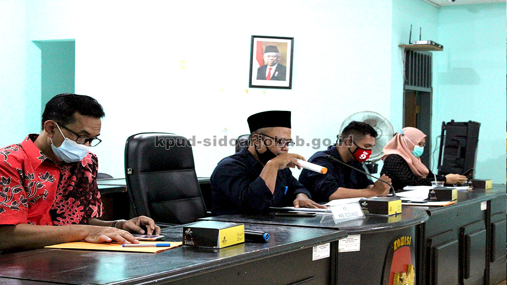 kpud-sidoarjokab.go.id-KPU Kabupaten Sidoarjo melaksanakan sosialisasi peraturan KPU Nomor 10 Tahun 2020 tentang perubahan atas peraturan KPU Nomor 6 Tahun 2020 tentang pelaksanaan pemilihan Gubernur dan Wakil Gubernur, Bupati dan Wakil Bupati dan /atau Wali kota dan Wakil Wali Kota serentak lanjutan dalam kondisi bencana non alam Corona Virus Disease 2019 (Covid-19), Jumat (18/09/2020). Sosialaisasi tersebut diselenggarakan di Aula KPU Sidoarjo, Jl. Cemengkalang No 1, Sidoarjo. Hadir dalam sosialisasi, ketua dan anggota KPU Sidoarjo, Bawaslu Sidoarjo, forkopimda sidoarjo, tim kampanye, Penghubung Calon/LO dan partai politik pendukung dari bakal pasangan calon Bupati dan Wakil Bupati Sidoarjo tahun 2020.Acara sosialisasi ini dimulai pukul 14.00 WIB ini dibuka langsung oleh Ketua KPU Sidoarjo, M.Iskak. Dalam sambutannya, M.Iskak mengungkapkan bahwa sangat perlu sosialisasi terkait PKPU No 10 tahun 2020. "Karena di beberapa kesempatan ketika kita melaksanakan kegiatan, dirasa kurang maksimal peran kita bersama terkait dengan protokol kesehatan," ungkap Iskak.Lanjut Iskak, hanya satu kunci dan pemahaman bersama agar pemilihan serentak ini bisa di lanjutkan tahapannya. “Jadi bapak/ibu sekalian, perlu kita pahami bersama bahwa pemilihan Bupati dan Wakil Bupati di Kabupaten Sidoarjo atau di seluruh Indonesia ini bisa dilanjutkan kembali tahapannya dengan 1 yang menjadi panglimanya, yakni pelaksanaan protokol kesehatan. Ini yang harus kita pahami bersama, baik kami sebagai penyelenggara ataupun njenengan semua sebagai peserta pemilihan nanti, seluruh stakeholder yang ada di Kabupaten Sidoarjo,” lanjutnya.Iskak berharap proses pilbup Sidoarjo 2020 berjalan lancar dengan tetap mengikuti protokol kesehatan, karena itu adalah syarat mutlak yang telah disepakati berbagai lembaga negara. "Kita berharap seluruh proses pilbup di Kabupaten Sidoarjo nanti bisa selalu memperhatikan protokol kesehatan, karena ini menjadi satu-satunya syarat pelaksanaan pemilihan di seluruh Indonesia, termasuk di Sidoarjo ini bisa dilanjutkan kembali. Karena ini telah menjadi kesepakatan dengan lembaga negara baik KPU, Bawaslu, DKPP dan unsur pemerintah yang diwakili kementerian dalam negeri ataupun DPR RI, sebagai representasi dari rakyat Indonesia," tutup Iskak. (syamsudin)