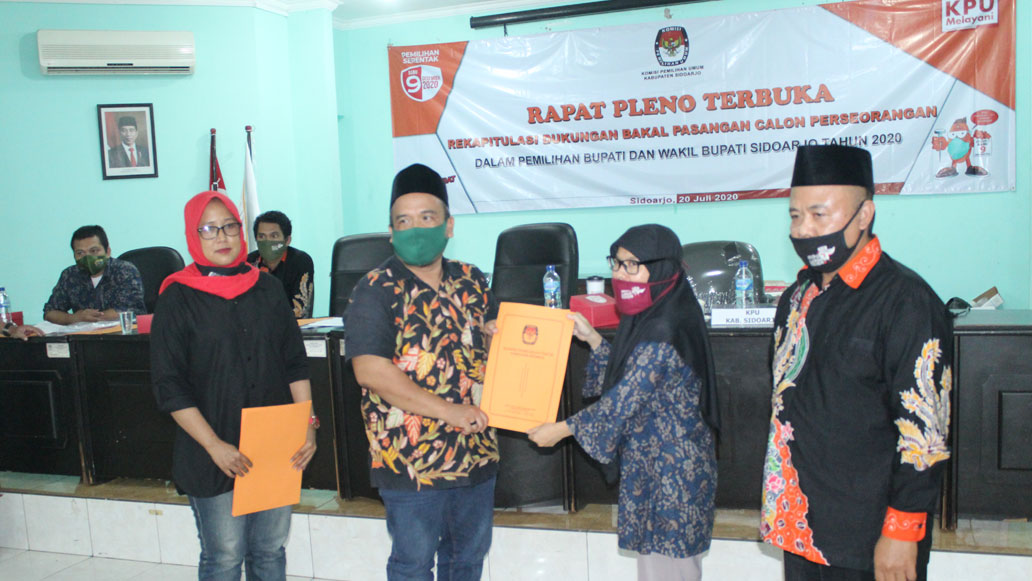 kpud-sidoarjokab.go.id-Akhir pekan tak menjadi halangan Komisi Pemilihan Umum (KPU) Kabupaten Sidoarjo untuk melaksanakan salah satu tahapan Pilbup Sidoarjo tahun 2020. Seperti agenda apel hari ini, Sabtu (18/07/2020), yang dilanjutkan monitoring gerakan Coklit serentak di Kabupaten Sidoarjo. Apel gerakan coklit bersama ini dilakukan oleh Komisioner KPU Sidoarjo dan petugas PPDP di wilayah masing-masing. Setelah apel, para Komisioner KPU Sidoarjo melakukan coklit dengan tujuan para tokoh masyarakat di Kabupaten Sidoarjo. Sebut saja coklit serentak di rumah Ketua DPRD Kabupaten Sidoarjo oleh Komisioner KPU Sidoarjo, Ana Azizah dan anggota PPDP, Ketua KPU Sidoarjo yang mencoklit Wakil Bupati Sidoarjo, dan Komisioner lainnya yang mencoklit Kepala Dispendukcapil Sidoarjo, Ketua MUI Sidoarjo, Ketua persatuan penyandang cacat mandiri dan tokoh masyarakat lainnya. Dalam arahannya, M. Iskak menyampaikan, setelah apel serentak dilaksanakan, PPDP akan melakukan coklit ke daerah masing-masing untuk mencoklit masyarakat. Untuk itu, kami harap masyarakat tidak takut karena para petugas sudah mengikuti protokol kesehatan. "Kami dari KPU telah memastikan petugas PPDP sudah dilakukan rapid test. Yang reaktif kami istrahatkan, karena keselamatan penyelengara dan masyarakat yang paling utama," jelas M.Iskak.Ketua Majelis Ulama Indonesia (MUI) Cabang Sidoarjo KH Salim Imron di Desa Putat Kecamatan Tanggulangin Sidoarjo juga yang memberikan testimoni yang serupa supaya masyarakat tidak takut untuk dicoklit oleh petugas PPDP. "Saya himbau agar masyarakat Sidoarjo tidak lagi khawatir saat didatangi petugas coklit. Karena mereka sudah terbukti sehat dan difasilitasi dengan APD yang lengkap," pesan KH Salim Imron.(tim ppid)