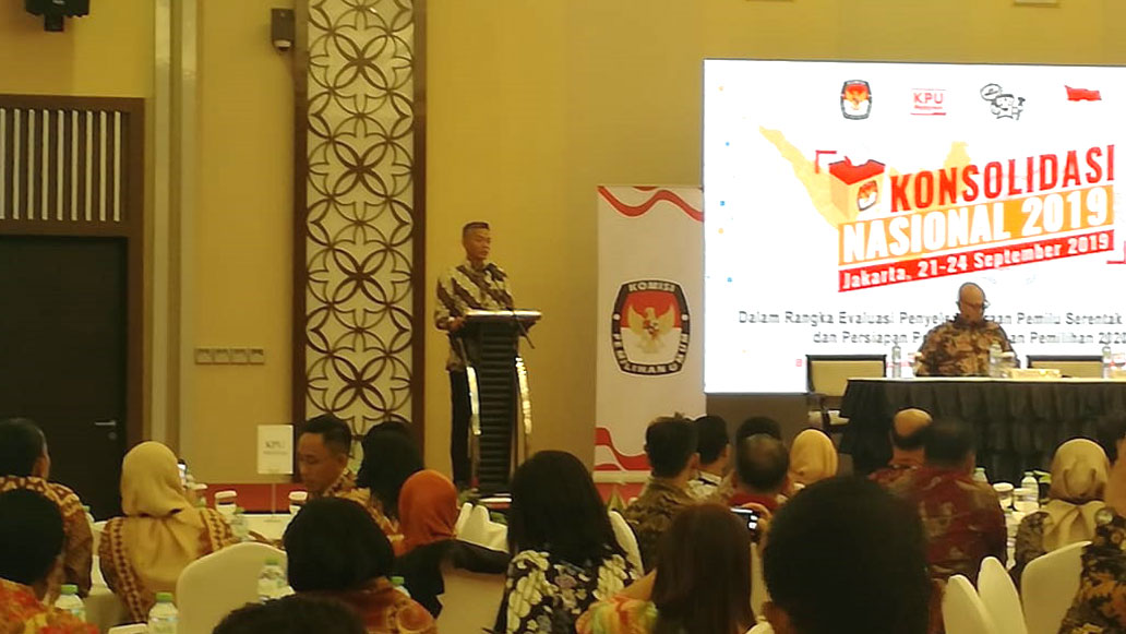 kpud-sidoarjokab.go.id – Dalam rangka evaluasi Penyelenggaraan Pemilu 2019 dan persiapan Penyelenggaraan Pemilihan 2020, KPU RI gelar Konsolidasi Nasional.Sabtu (21/9) Berlangsung di Hotel Grand Sahid Jakarta, Komisioner Divisi Hukum dan Pengawasan KPU RI Hasyim Asyari membuka langsung Konsolidasi.“Acara Konsolidasi ini dibagi masing – masing Divisi, mari kita berdoa semoga kita semua diberi kesehatan, kekuatan, dan kesabaran.” Jelas Hasyim.Tidak hanya itu, Hasyim memberi tiga pesan agar senantiasa bersabar dalam menjalankan tugas. “Kita harus senantiasa bersabar dalam menjalankan tugas, terutama ada tiga hal yaitu sabar menghadapi ujian, sabar menghadapi kemaksiatan, dan sabar dalam ketaatan Allah SWT.” Lanjut Hasyim.Sementara Komisioner Divisi Hukum KPU Kabupaten Sidoarjo Ana Aziza hadir dalam konsolidasi tersebut.(ryan)