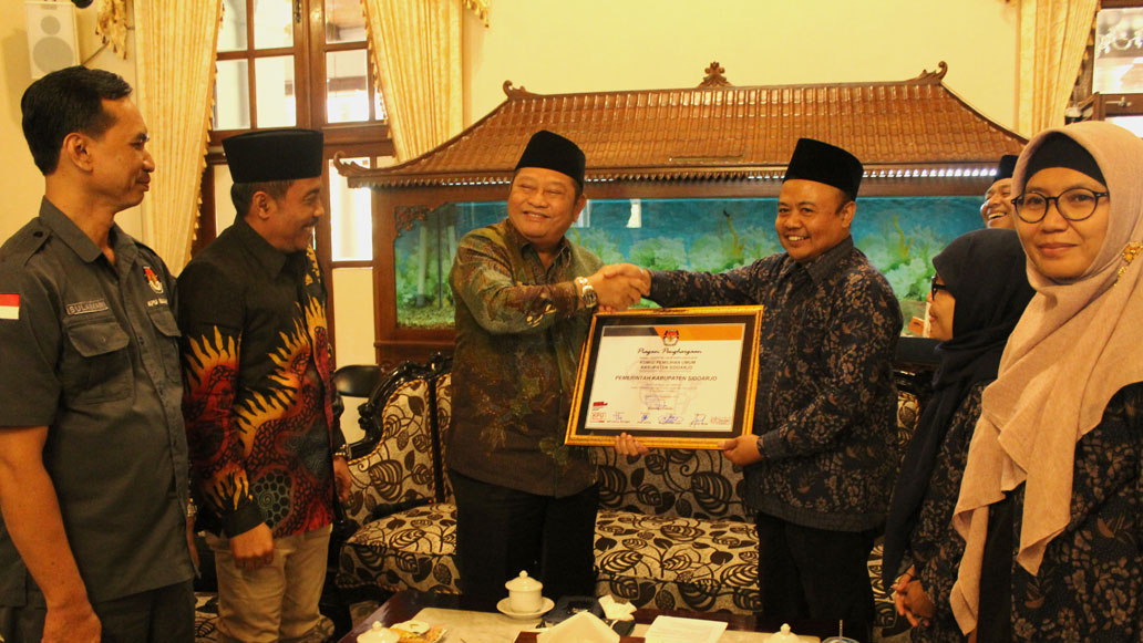 kpud-sidoarjokab.go.id – Kamis (19/9) KPU Kabupaten Sidoarjo gelar Rapat Koordinasi bersama Pemkab terkait persiapan Pilkada Serentak 2020. Tidak hanya itu, KPU juga memaparkan laporan Pemilu 2019.Di pimpin Ketua KPU Mukhammad Iskak, dihadapan Forkopimda dan OPD Iskak menyampaikan laporan Pemilu 2019. Antara lain meningkatnya Partisipasi Masyarakat hingga mencapai 82 persen pada Pemilu dan memaparkan perolehan suara dalam setiap Pemilihan.Selain itu, Iskak sangat mengapresiasi semua pihak atas partisipasi dalam Pemilu. “Kami penyelenggara Pemilu sangat berterimakasih kepada semua pihak karena telah berpartisipasi dan telah bersinergi sehingga Pemilu 2019 berjalan dengan lancar, aman, dan damai.” Jelas Iskak.Sebagai bentuk apresiasi tersebut KPU memberikan Piagam Penghargaan Kepada Pemkab Sidoarjo, Forkopimda, Bakesbangpol, Dispendukcapil, Satpol PP dan 18 Kecamatan.Sementara Divisi Teknis Miftakul Rohma menyampaikan beberapa hal terkait persiapan Pilkada Serentak yang akan dilaksanakan pada 23 September 2020. Salah satu materi yang disampaikan yakni terkait penandatanganan Naskah Perjanjian Hibah Daerah (NPHD) yang harus dilakukan paling lambat satu bulan sebelum tahapan Pilkada dimulai atau 1 Oktober.Pada kesempatan yang sama Bupati Sidoarjo H. Saiful Ilah mengungkapkan rasa syukurnya atas kesuksesan Pemilu 2019 yang aman dan damai. “Alhamdulillah semua berjalan aman dan sukses, karena suksesnya Pemilu pada hakikatnya merupakan hasil kerja keras segenap elemen bangsa.” Terang Saiful dalam sambutannya.Tidak hanya itu, pihaknya sangat mengapresiasi kinerja KPU. “Dengan meningkatnya partisipasi Masyarakat hendaknya kita apresiasi dan motivasi KPU, agar Pilkada mendatang berjalan dengan sukses, lancar, dan kondusif.” Lanjutnya.(ryan)